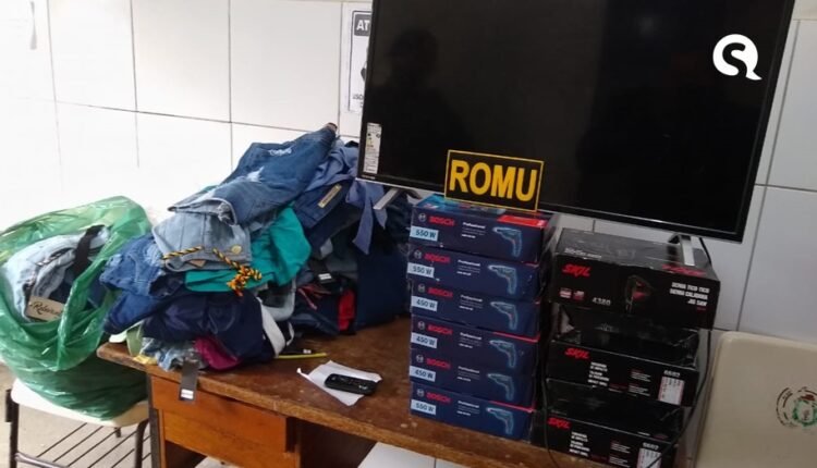 Ao todo, foram recuperadas 108 peças de roupa, uma TV de 32 polegadas, 10 furadeiras e uma serra tico-tico. O suspeito não foi localizado. Os itens foram encaminhados para a Delegacia de Polícia Civil que investigará o caso e fará a restituição dos bens aos proprietários.