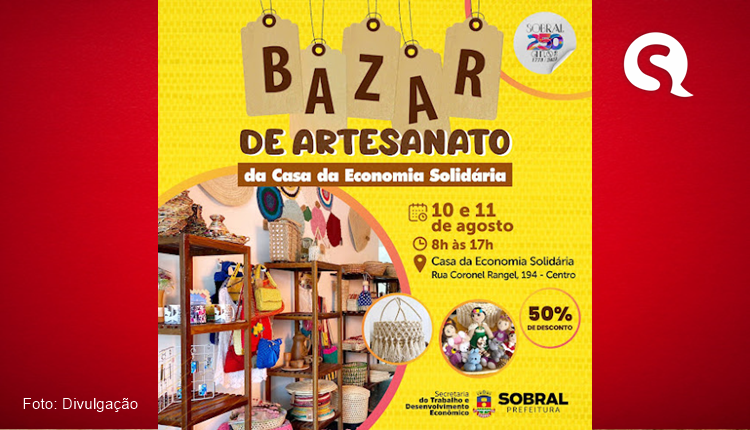Casa da Economia Solidária de Sobral realiza bazar de artesanato nos dias 10 e 11 de agosto
