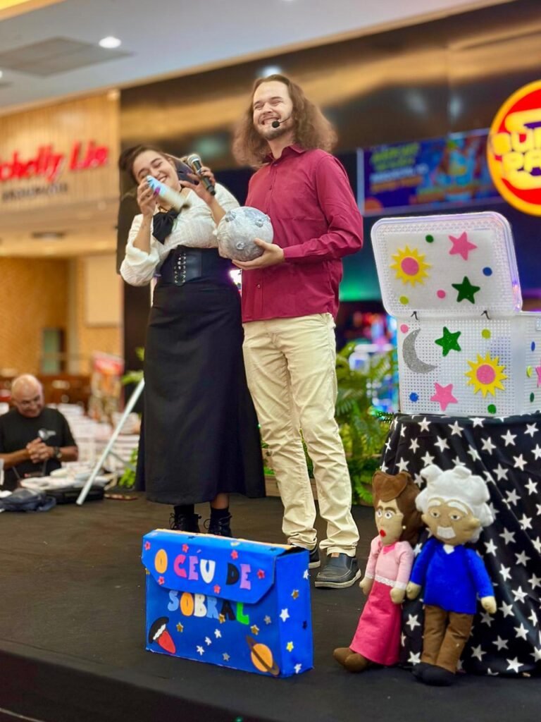 No último dia 30 de novembro, a Praça de Alimentação do Sobral Shopping se transformou em um palco de divulgação científica e resgate histórico. Larissa, conhecida nas redes como @larittrix e Coordenadora de Projetos e Mediadora do Museu do Eclipse de Sobral, protagonizou uma peça teatral emocionante dentro da programação do evento “Parque da Luz”, promovido pela Secretaria da Educação (SME) de Sobral.