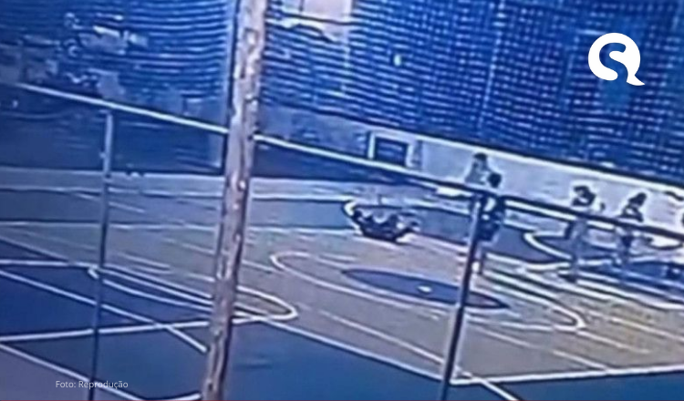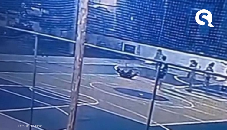 Imagens de uma câmera de segurança registraram o momento em que o médico entra na quadra acompanhado de uma criança e se aproxima do adolescente que brincava com outras crianças no local. Em seguida, o homem empurra o adolescente, que cai no chão.