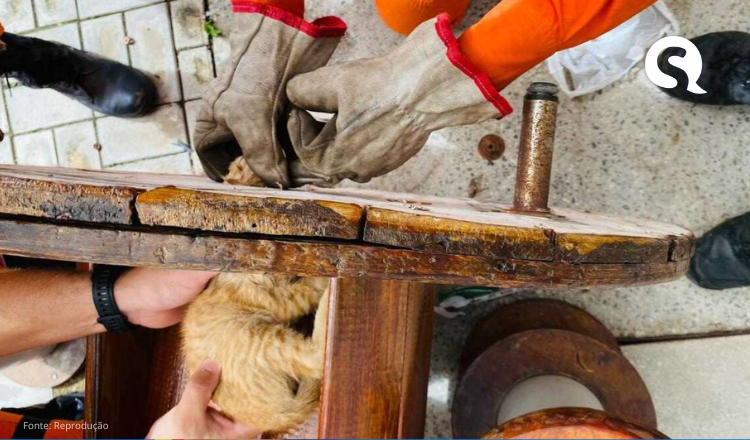 O Corpo de Bombeiros Militar do Estado do Ceará (CBMCE) resgatou um filhote de gato que prendeu a cabeça em um carretel de madeira, na manhã desse domingo (30), em um estabelecimento comercial no município de Sobral.