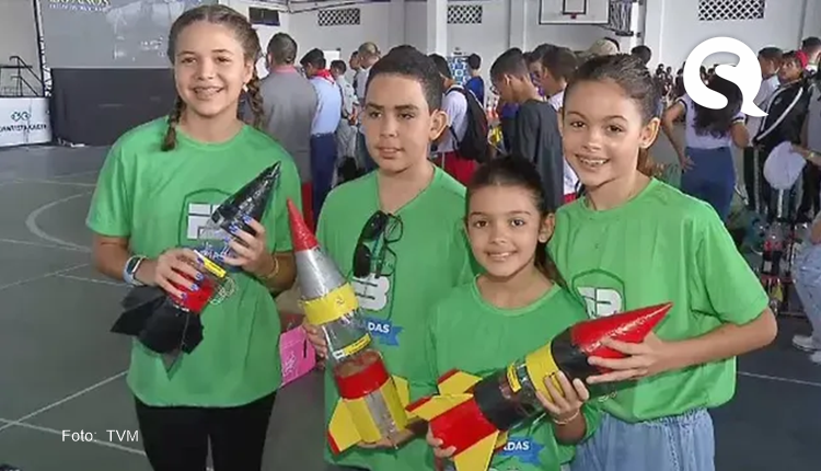 Os foguetes são feitos pelos próprios estudantes. No desafio, quem conseguir lançar mais longe, ganha a competição.