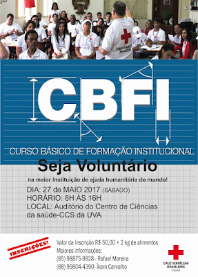 A Cruz Vermelha Brasileira no Ceará/Coordenação de Sobral abre inscrições para o CFBI – Curso de Formação Básica Institucional, que é a porte de entrada para se tornar voluntário da maior instituição de ajuda humanitária do mundo.