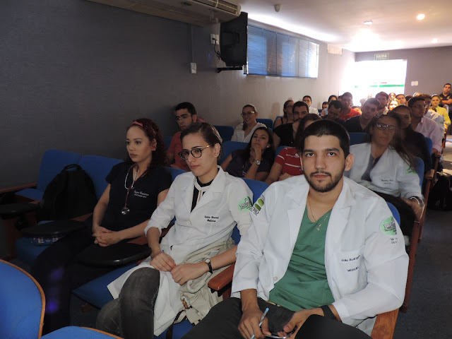 | Internos do Curso de Medicina de Sobral com preceptores do Internato em Cirurgia, durante sessão clínica na Santa Casa de Sobral/Hospital de Ensino |
