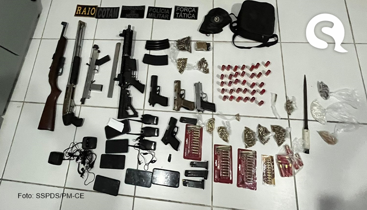 Durante a ação, os policiais militares apreenderam um fuzil calibre 556, um rifle calibre 22, quatro pistolas, duas armas de fabricação artesanal, cerca de 367 munições de diversos calibres, além de aparelhos celulares e drogas foram apreendidos. Diante disso, nove adultos e dois adolescentes, além do material apreendido, foram encaminhados para a Delegacia Metropolitana de Caucaia, onde os procedimentos sobre o fato foram registrados.