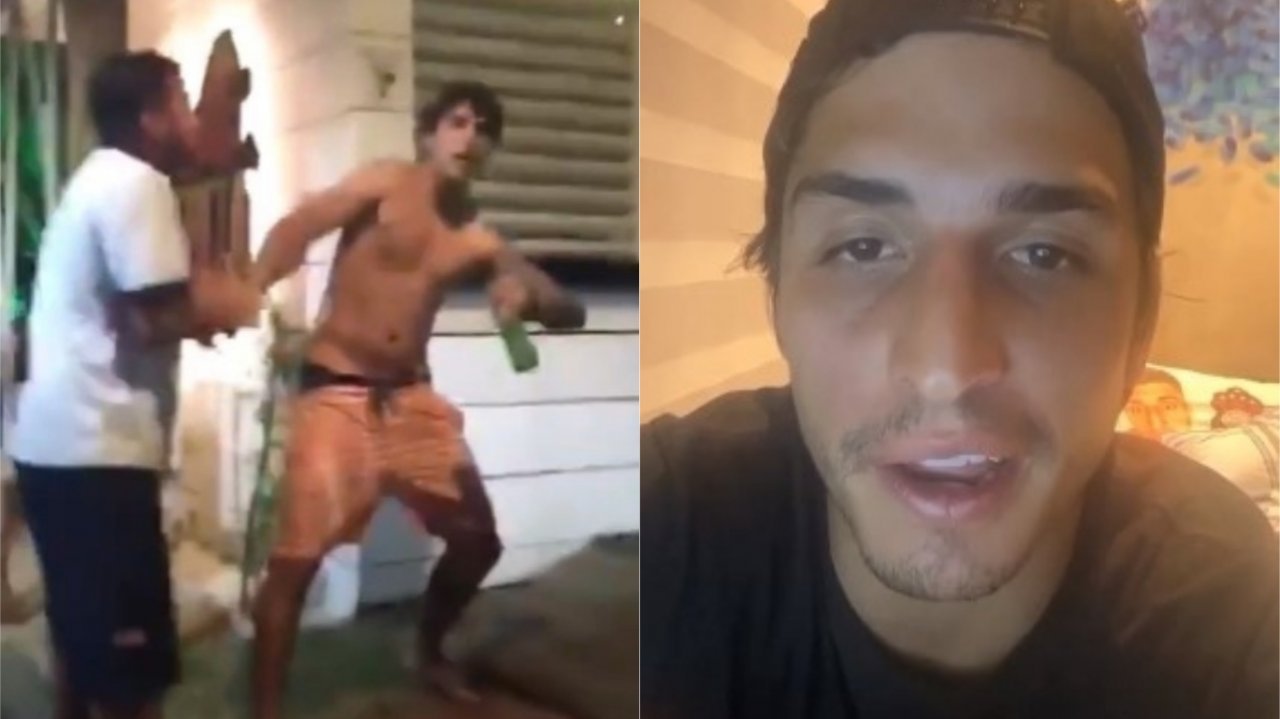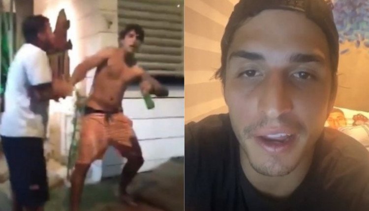 Felipe Prior se envolve em briga, apanha e tenta acertar homem com garrafada