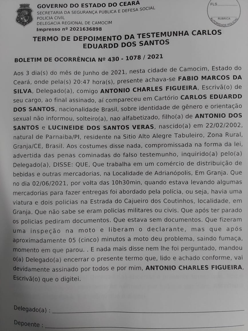 O fato gerou revolta geral no município. A Delegada Titular de Granja, Patrícia Mendonça, já está apurando o caso. A População espera ainda que a Controladoria Geral Disciplinar – CGD seja acionada e puna os policiais.