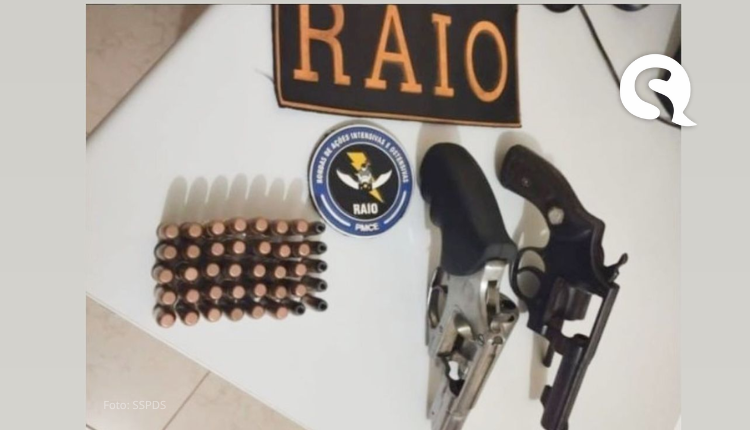 Diante disso, os raianos se deslocaram e identificaram o suspeito como um homem de 26 anos, com antecedentes por posse irregular de arma de fogo e tráfico de drogas. Com ele, foram apreendidos dois revólveres de calibres .38 e .32, além de um total de 40 munições dos dois calibres, e três aparelhos celulares.