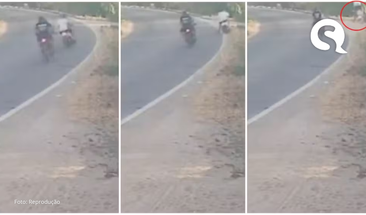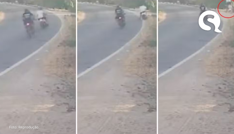 Um vídeo registrou o momento do acidente na CE-580, via de acesso ao distrito de Custódio. Nas imagens, é possível identificar que as duas pessoas na motocicleta trafegavam sem capacete.