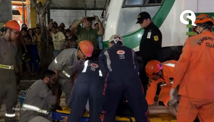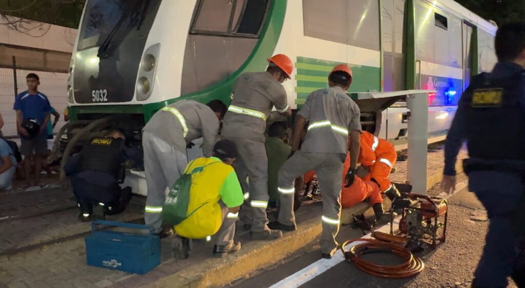 No início da noite desta quinta-feira (31), um idoso, ainda não identificado, foi resgatado debaixo do VLT em Sobral, após tentar atravessar a linha férrea e ser atingido pelo veículo leve sobre trilhos. A ação de resgate contou com uma força-tarefa envolvendo o Corpo de Bombeiros, Guarda Civil Municipal, Polícia Militar e o apoio da população local.