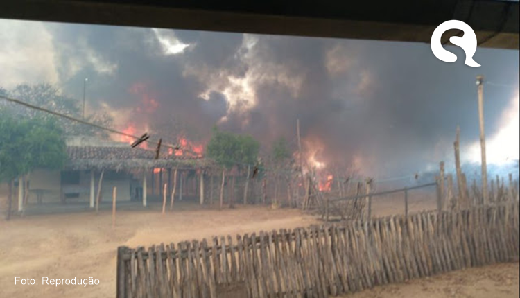 Incêndio de grandes proporções assusta moradores e ameaçam casas na zona rural de Santa Quitéria