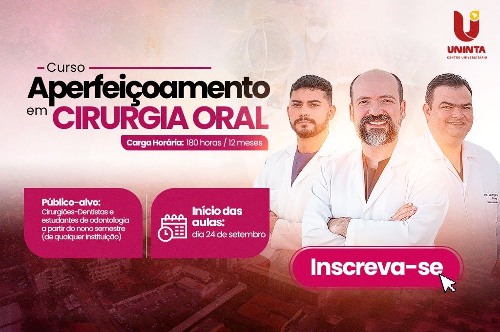 As inscrições podem ser realizadas na página uninta.vc/cursocirurgiaoral. Para saber mais, entre em contato pelo whatsapp (88) 9960-0124.