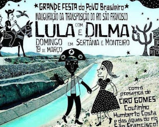 Os ex-presidentes Lula e Dilma, e o ex-ministro da Integração, Ciro Gomes, estarão juntos hoje, na cidade de Monteiro, na Paraíba, para inaugurar, legitimamente, o trecho leste da Transposição do Rio São Francisco, cuja paternidade Michel Temer tentou também usurpar, na semana passada.