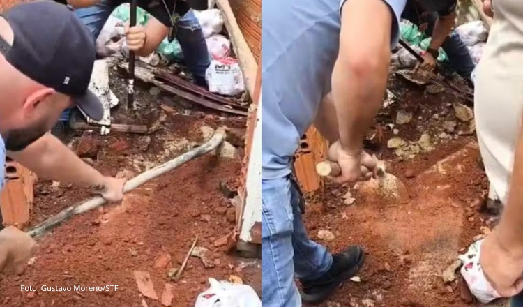 O corpo estava em uma cova rasa, já em estado avançado de decomposição, e apresentava sinais de lesões provocadas por instrumento contundente, possivelmente causadas por ferramentas.