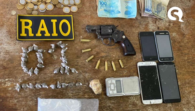 Após uma denúncia anônima sobre um homem que estaria armado e vendendo drogas na região, os PMs se deslocaram até o bairro Terrenos Novos. No endereço indicado, Fabiana Maria da Silva (34), Lucas Balbino Ferreira (21) e Maria Marilane da Silva Balbino (18) foram encontrados. Após vistoria no imóvel, um revólver calibre 38, seis munições do mesmo calibre, quatro aparelhos celulares e uma quantia em dinheiro foram apreendidos.