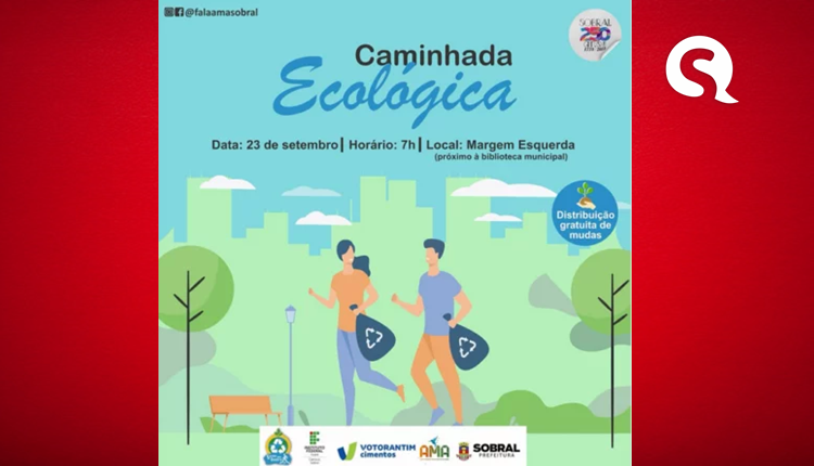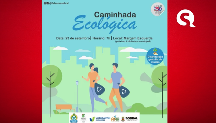Neste sábado (23/09), a Margem Esquerda recebe a Caminhada Ecológica – Vamos juntos fazer a diferença! Uma ação realizada pela Votorantim Cimentos em parceria com o Instituto Federal de Educação, Ciência e Tecnologia do Ceará (IFCE) e Agência Municipal do Meio Ambiente de Sobral. A concentração começa a partir das 6h30, em frente a Biblioteca Municipal.