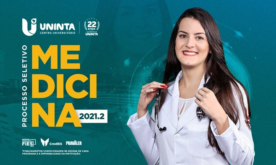 O Centro Universitário Uninta anuncia abertura do Processo Seletivo 2021.2 para o curso de Medicina Campus Sobral. A seleção para as 80 vagas da nova turma será feita mediante o Aproveitamento da Nota do Enem do candidato. As inscrições para o primeiro ciclo já estão disponíveis no site uninta.edu.br/medicina.