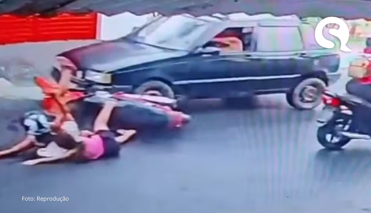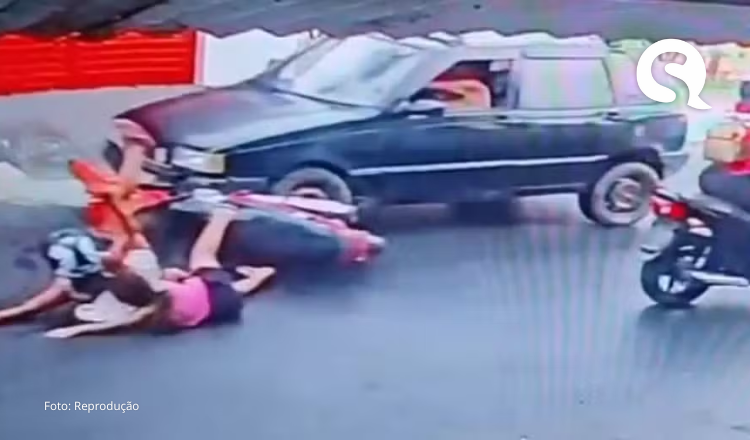 Uma motociclista que estava transportando uma criança e um bebê de coloco derrapou na pista e teve o veículo atingido por um carro ao perder o controle da moto na Rua Dr. Raimundo Veras, em Camocim, no litoral do Ceará, na manhã desta terça-feira (3).