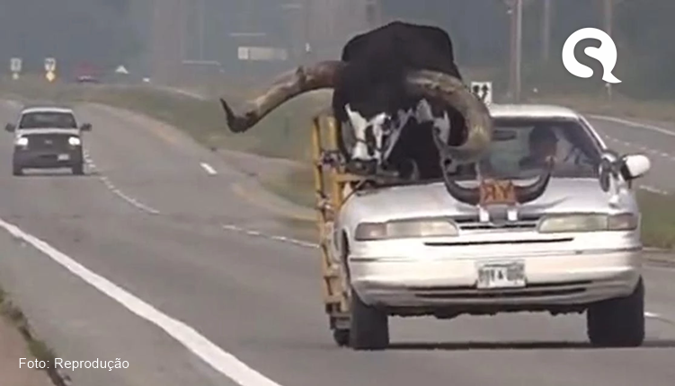 Motorista é advertido por transportar touro no banco de passageiro do carro nos EUA