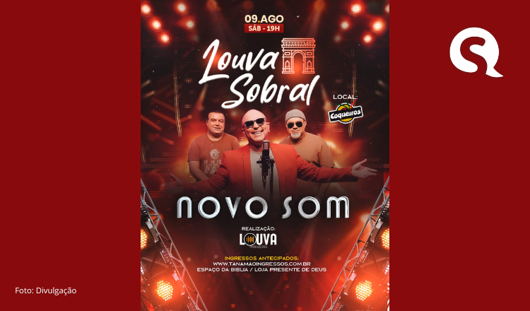 Sobral será palco de uma grande noite de louvor e adoração no próximo dia 9 de agosto, a partir das 19h, com a realização do evento “Louva Sobral”, que trará como atração principal a consagrada banda gospel Novo Som. O evento acontecerá no espaço Coqueiros, tradicional reduto de grandes encontros musicais e religiosos da cidade.