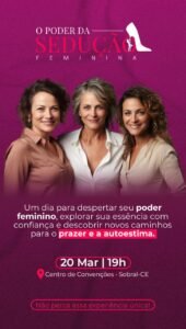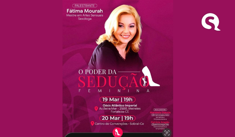 Em comemoração ao Mês da Mulher, o Ceará recebe um evento imperdível que promete mudar a forma como as mulheres enxergam sua sensualidade e poder pessoal. A renomada sexóloga e mestra em artes sensuais, Fátima Moura, chega a Fortaleza e Sobral com a palestra “O Poder da Sedução Feminina”, que tem como objetivo ajudar cada mulher a descobrir e desbloquear o magnetismo que existe dentro de si.