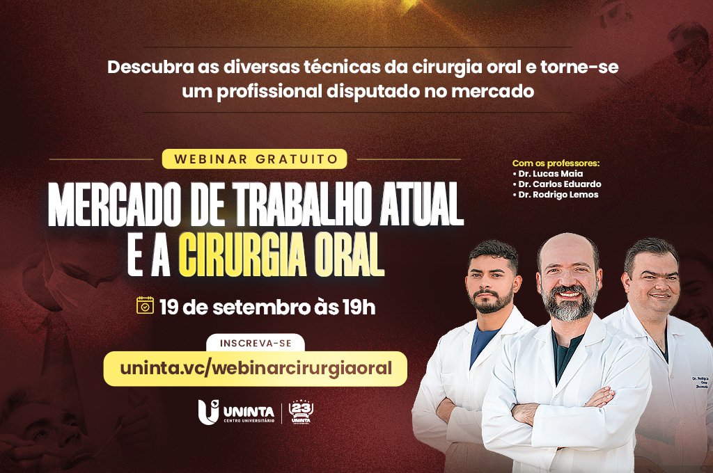 O evento é totalmente gratuito e tem vagas limitadas. Para garantir a participação, as inscrições devem ser feitas pelo link uninta.vc/webinarcirurgiaoral