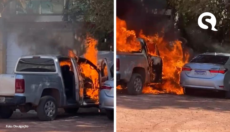 Caminhonete era utilizada pela prefeitura e foi totalmente consumido pelas chamas