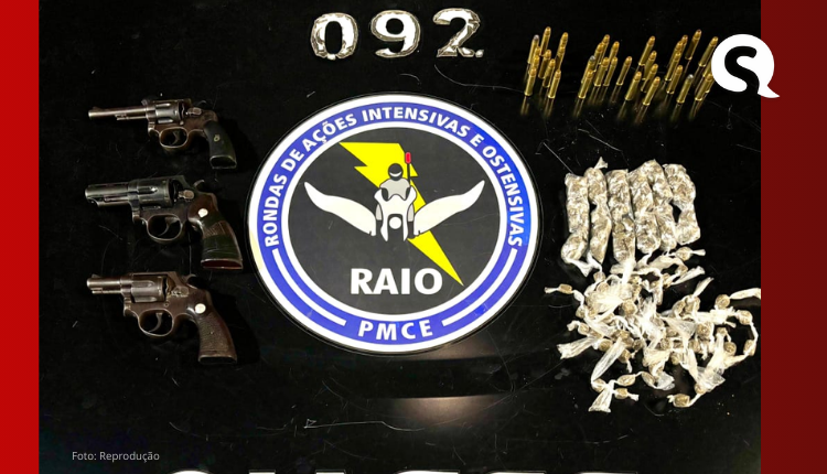 A Polícia Militar do Ceará (PMCE), por meio de uma equipe do 4º Batalhão de Policiamento de Rondas de Ações Intensivas e Ostensivas (4º BPRAIO), apreendeu três revólveres, 33 munições e 164 gramas de maconha durante patrulhamento no município de Amontada. A ação ocorreu na madrugada deste domingo (13), no bairro São Sebastião.