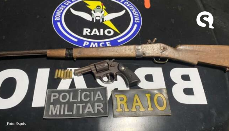 A Polícia Militar do Ceará, por meio do Comando de Policiamento de Rondas de Ações Intensivas e Ostensivas, apreendeu, na noite desse domingo (22), duas armas de fogo na residência de um suspeito, no município de Uruoca. As armas foram encontradas escondidas em uma espécie de casinha de cachorro.