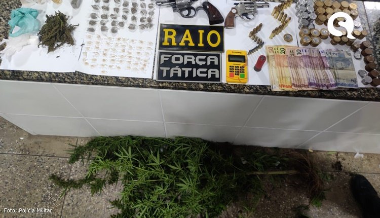 O cerco, porém, já estava montado e José Rivaldo Pereira Nascimento, 19, e Maria Auricelia Pereira de Sousa, 49, foram capturados. Foram apreendidos no lugar dois revólveres, de calibre 38 e 22, 38 gramas de maconha, 60 gramas de Cocaína e 83 gramas Crack, além de uma balança de precisão, e duas dúzias de munições.