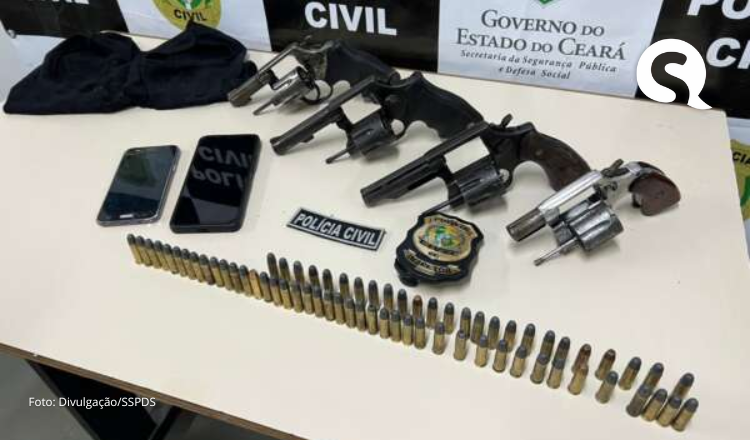 Uma operação coordenada pela Polícia Civil do Estado do Ceará (PCCE) realizada nessa quarta-feira (23), resultou na prisão em flagrante de um homem, de 19 anos, e na apreensão de quatro revólveres no município de Sobral – Área Integrada de Segurança 14 (AIS 14) do Estado. O homem foi autuado em flagrante pelos crimes de integrar grupo criminoso e posse ilegal de arma de fogo.