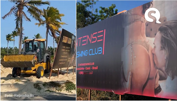 Prefeitura remove outdoor de casa de swing em vila no distrito de Icaraí, em Amontada após polêmica entre moradores