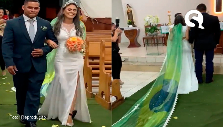 Um vídeo divulgado pela deputada federal Bia Kicis (PL-DF) nas redes sociais, no ultimo sábado (2/9), mostram uma mulher que se casa com traje inusitado. A noiva entrou na igreja usando a bandeira do Brasil como um véu.