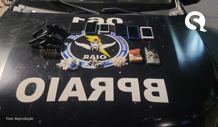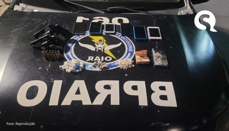 A operação foi realizada pelas equipes VTR-061 e RAIO-04, da 1ª Companhia do 4º BPRAIO, após denúncias anônimas informando sobre atividades criminosas na região. Durante a abordagem, os policiais encontraram dois revólveres (calibres .38 e .32), 17 munições intactas, além de drogas embaladas para venda, celulares, um relógio digital e R$ 61,00 em dinheiro.