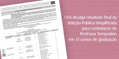 De acordo com o Departamento de Recursos Humanos (DRH/UVA), já foram enviadas cartas de convocação aos candidatos selecionados, informando a documentação necessária para efetivar a contratação. Os candidatos têm até o dia 11 de junho para entregar os documentos solicitados, no horário de atendimento das 8h às 13h30min.