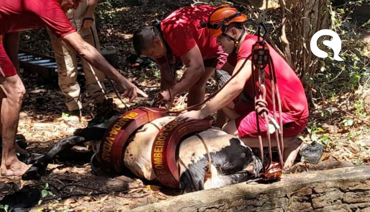 Uma vaca foi resgatada durante a última terça-feira, 17, após cair na cacimba de um sítio da cidade de Sobral, distante 233 quilômetros (km) de Fortaleza. Na ocasião, o animal caiu no poço de sete metros de profundidade e ficou preso.
