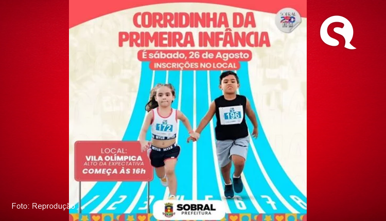 A Corridinha da Primeira Infância está chegando! Neste sábado (26/08), a Vila Olímpica de Sobral vai sediar um dia pra lá de especial pra criançada, e a Corridinha da Primeira Infância vai ser imperdível. A programação começa às 16 horas Traga as crianças e toda a família!