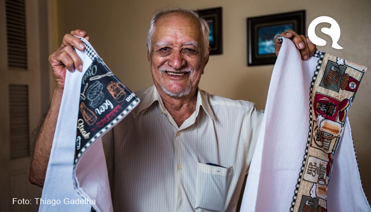 Viúvo cearense de 92 anos aprende a costurar panos de prato para lembrar da esposa
